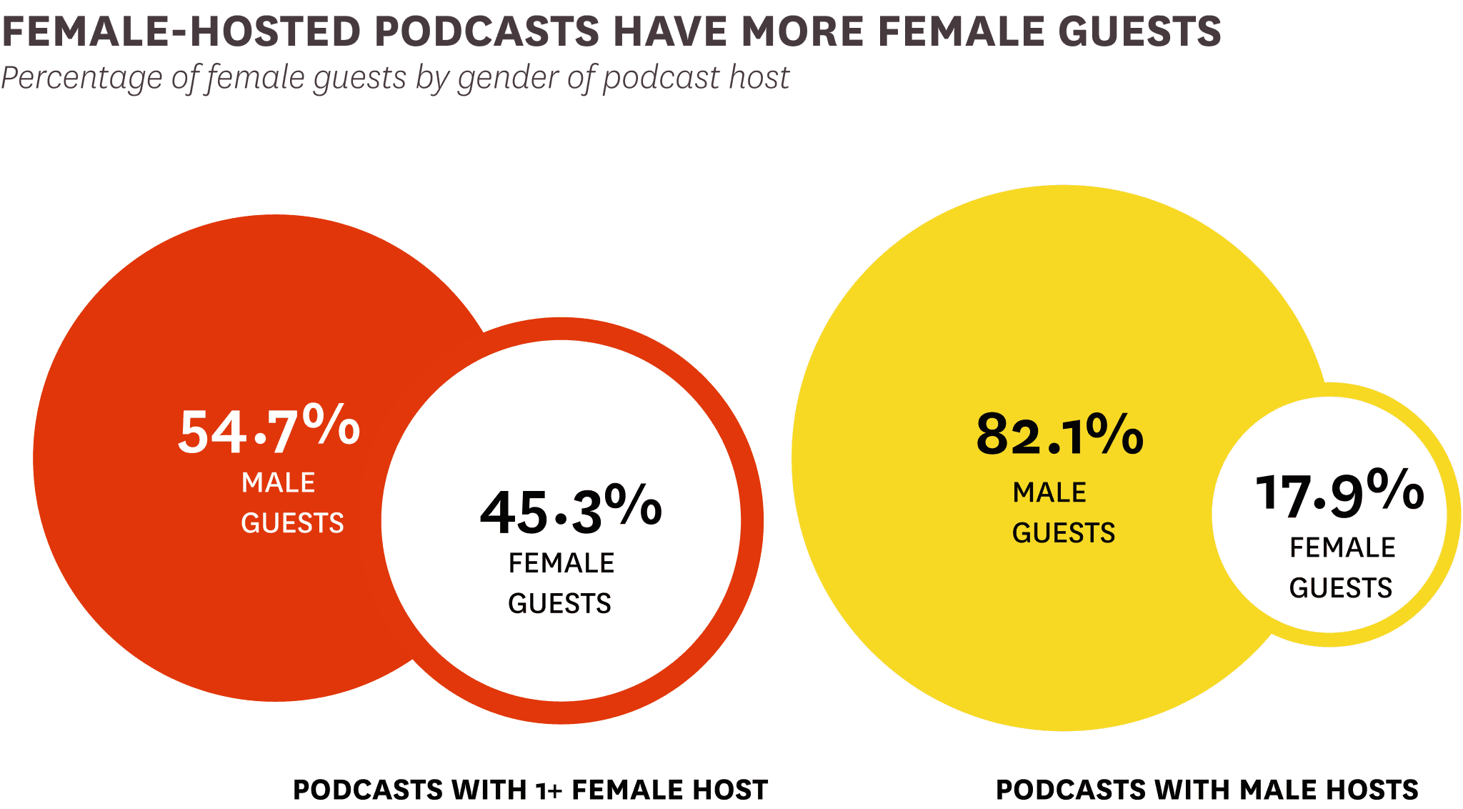 Finally, we were interested in whether having host gender was related to guest gender in podcasting.