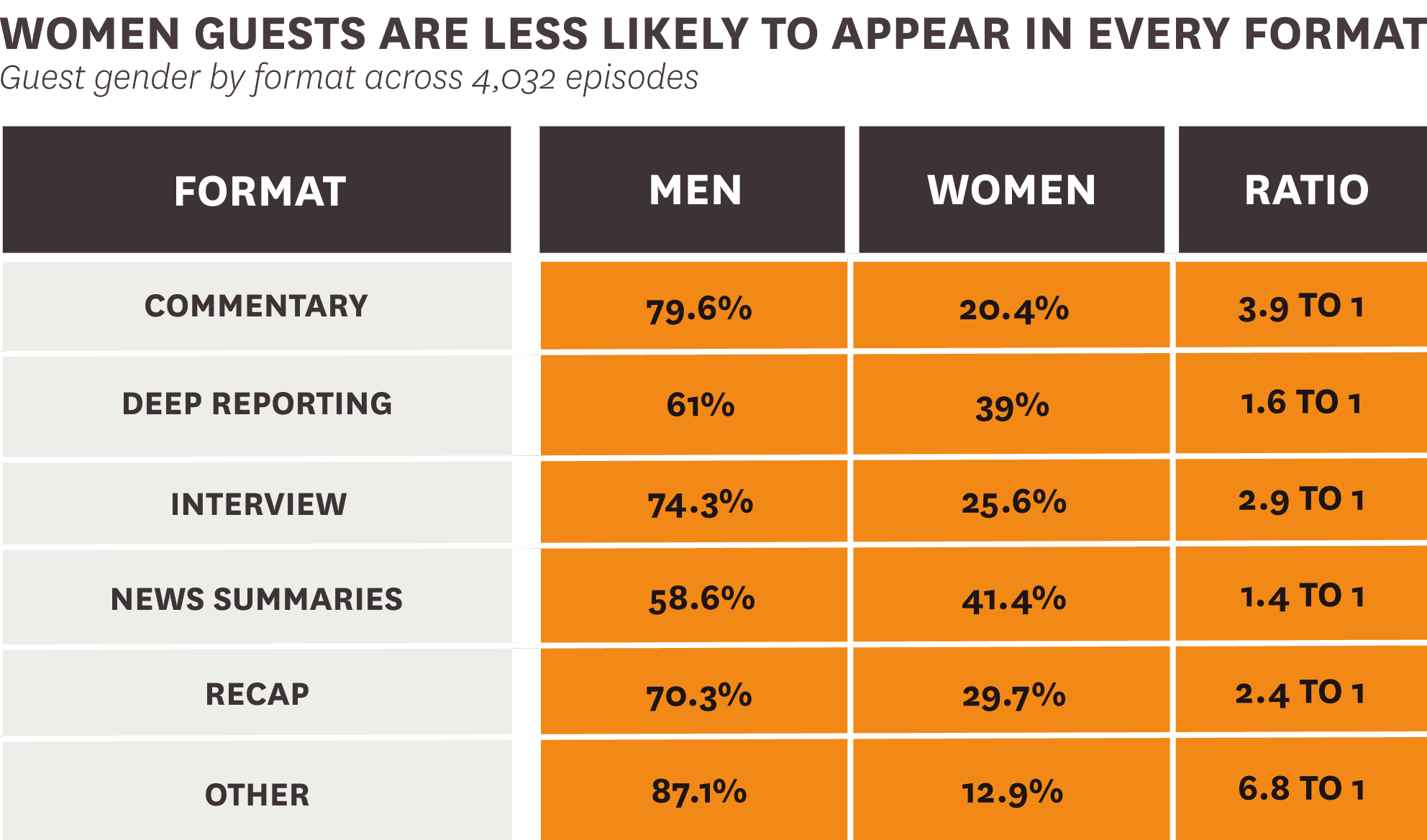The findings on guests indicate that there are gender differences in who is invited to provide commentary on podcasts.
